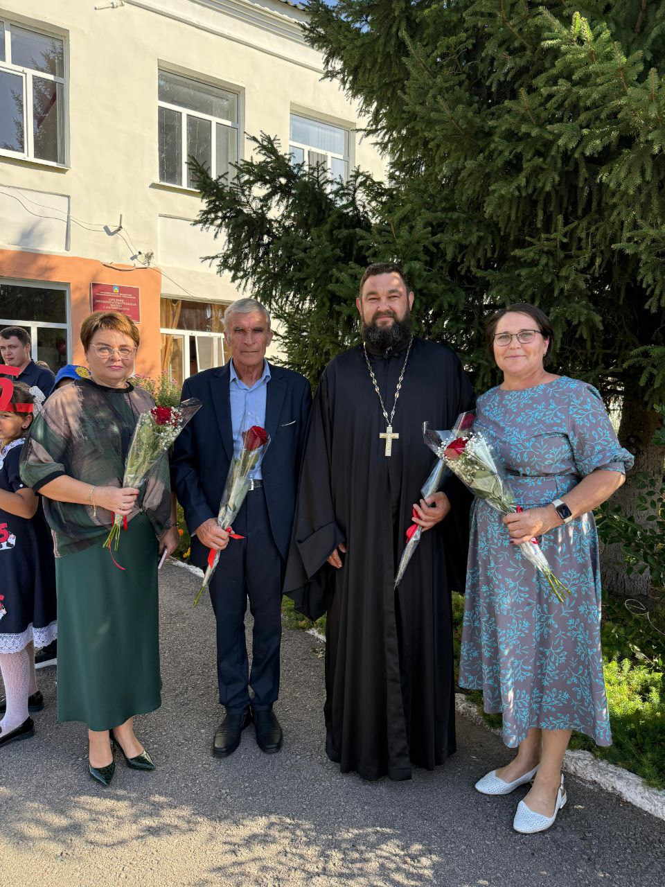 Настоятель храма Архангела Михаила с. Октябрьское, отец Дмитрий побывал сегодня на праздничной линейке, поздравил учащихся с днём знаний.
