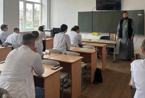 Рассказ отца Димитрия вызвал у студентов живой интерес. Ребята активно задавали вопросы, уточняя детали исторических событий и узнавая больше о значении иконы в жизни верующих. Беседа получилась тёплой и содержательной, позволив ребятам глубже осмыслить смысл предстоящих праздников.