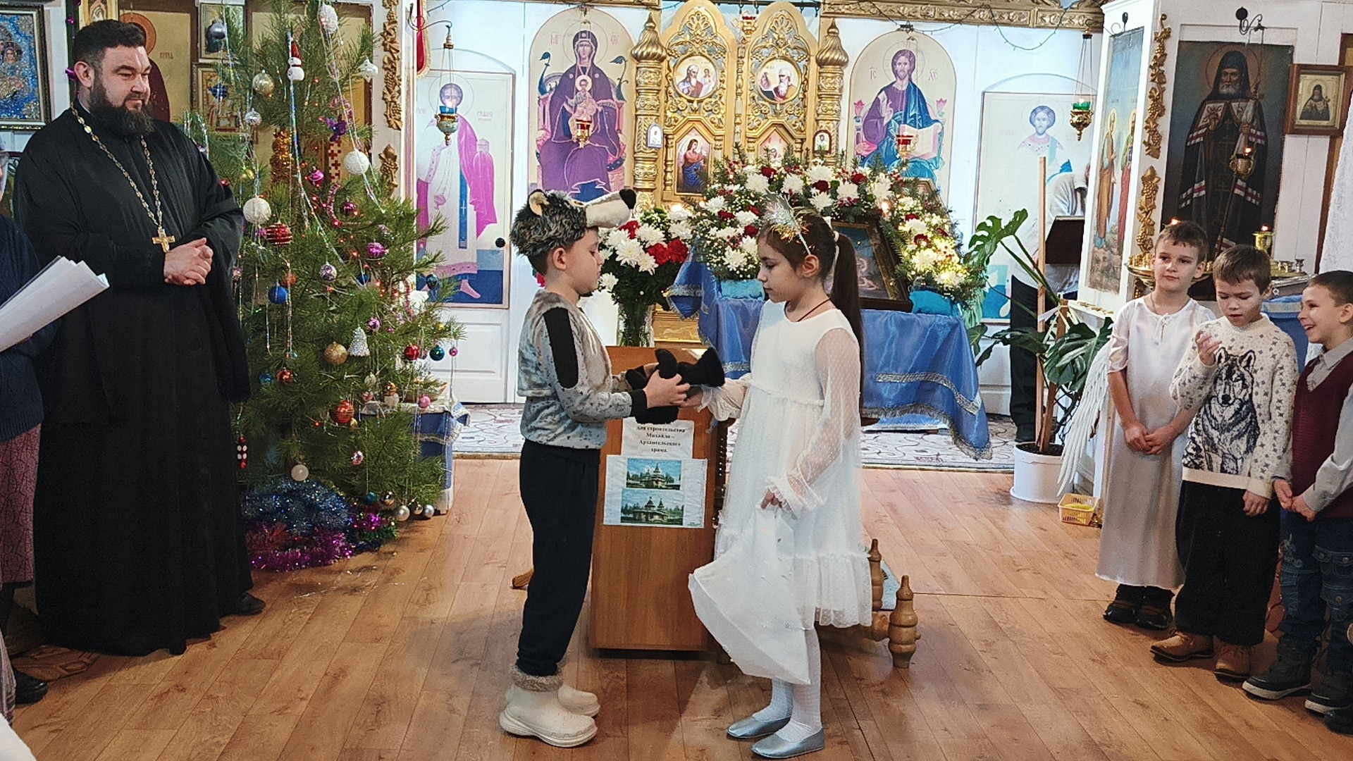 Традиционно наши воспитанники на Рождественской ёлке в храме, на этот раз вместе со школьниками.