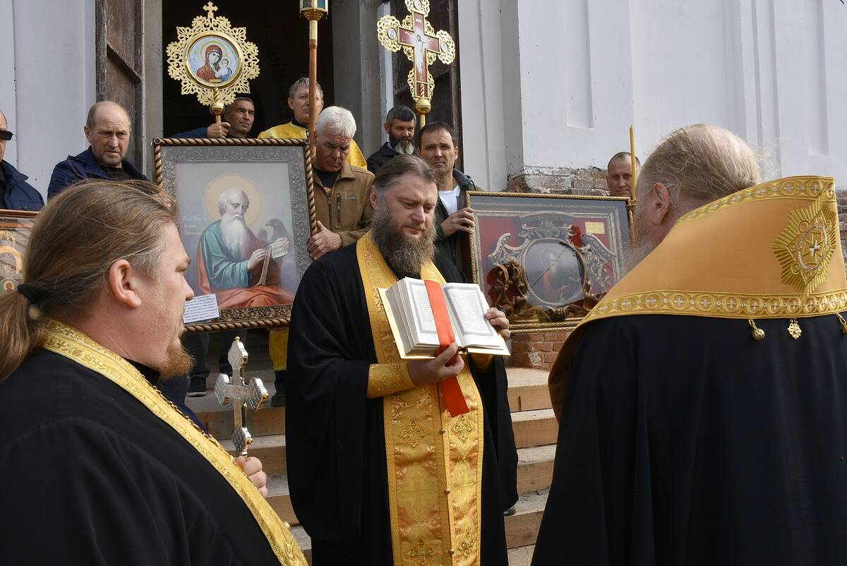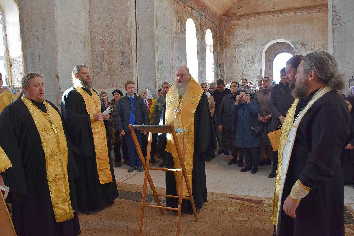 Преосвященнейший Евфимий, епископ Усманский, викарий Липецкой епархии, в престольный праздник посетил восстанавливающийся храм в с. Крутчик Усманского района и совершил богослужение