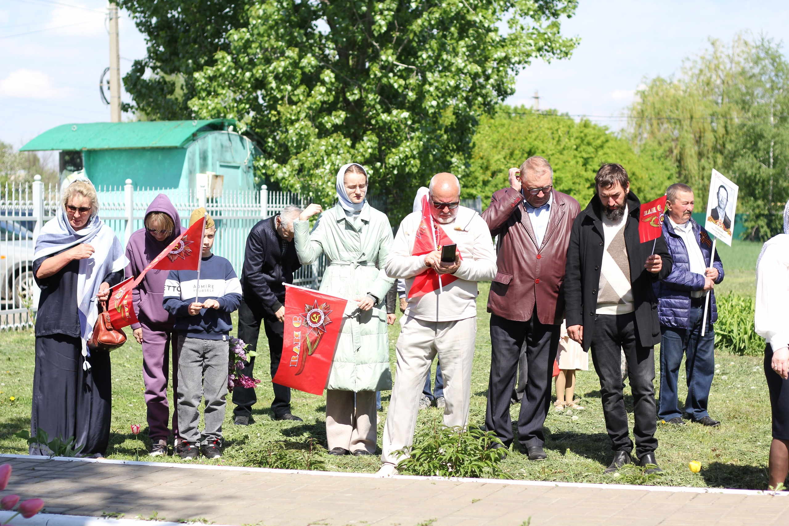 В с. Дмитриевка этот праздничный день начался с поминовения воинов, жизнь свою положивших за нашу мирную жизнь, они безжалостно сломали крылья фашистскому стервятнику и заставили его не просто отступить, но и побежденно склонить перед русским солдатом свою голову.