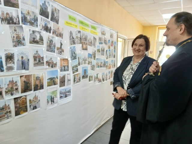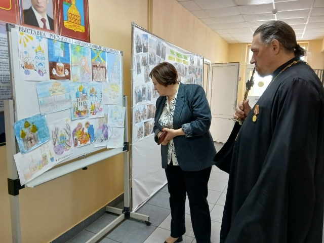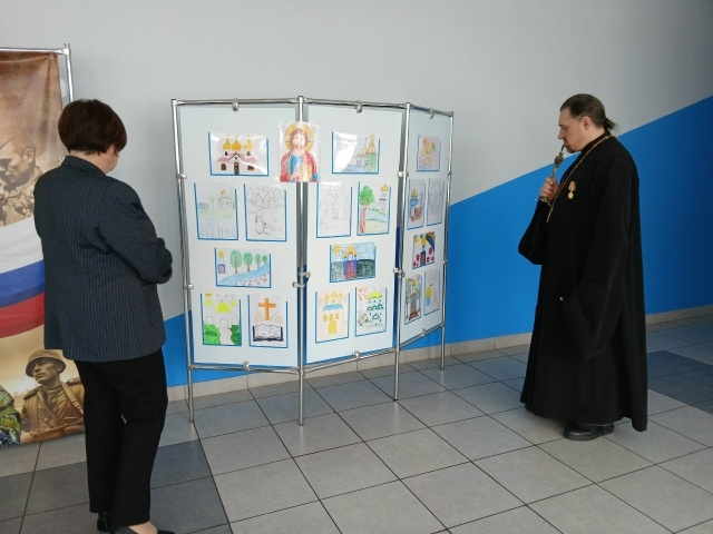 13 февраля 2026 г. красочные работы учащихся школы оценили священник Алексей Занин, директор школы Н.В.Попова и советник директора по воспитанию С.В.Перелыгина.