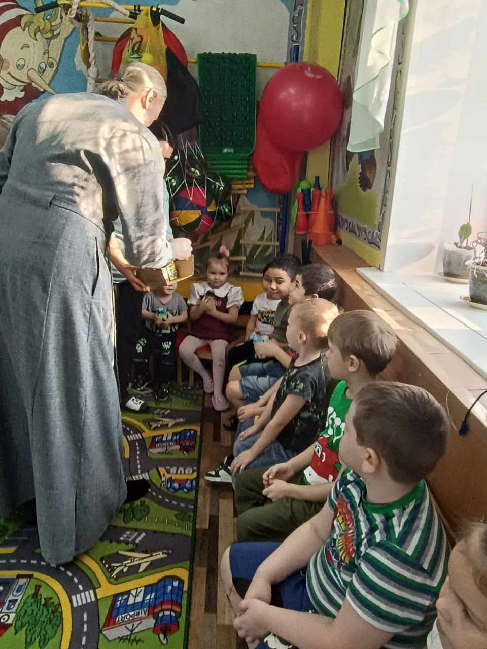 Ученики воскресной школы поздравили детей в садике