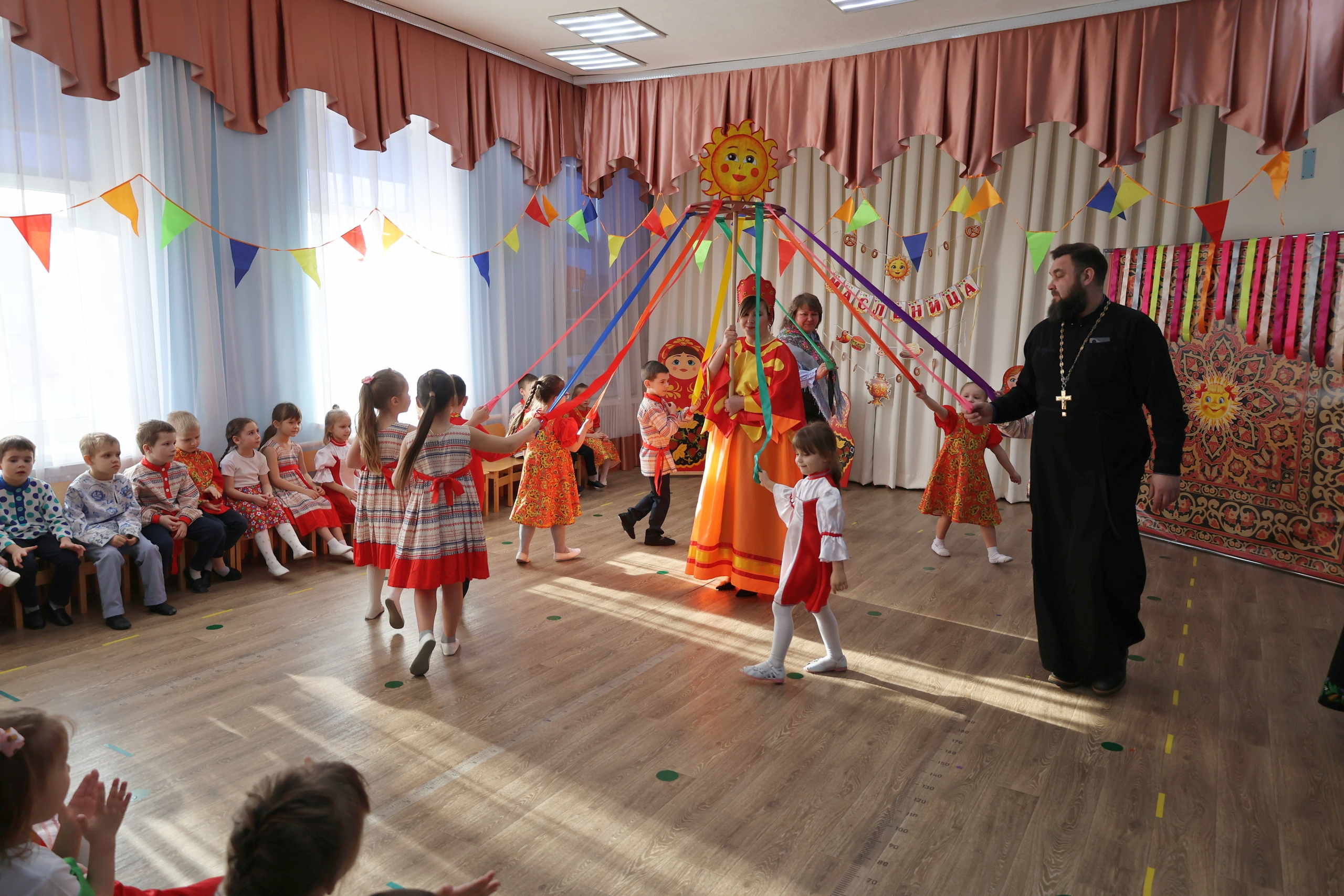 Особую духовную ноту мероприятию придал визит настоятеля Михайло-Архангельского храма села Октябрьское — отец Димитрий Малахов. Он рассказал детям о Прощёном воскресенье — важном дне, завершающем масленичную неделю. В доступной и понятной форме священнослужитель объяснил малышам суть традиции просить прощения и прощать других, подчёркивая важность доброты, взаимопонимания и уважения в отношениях между людьми.