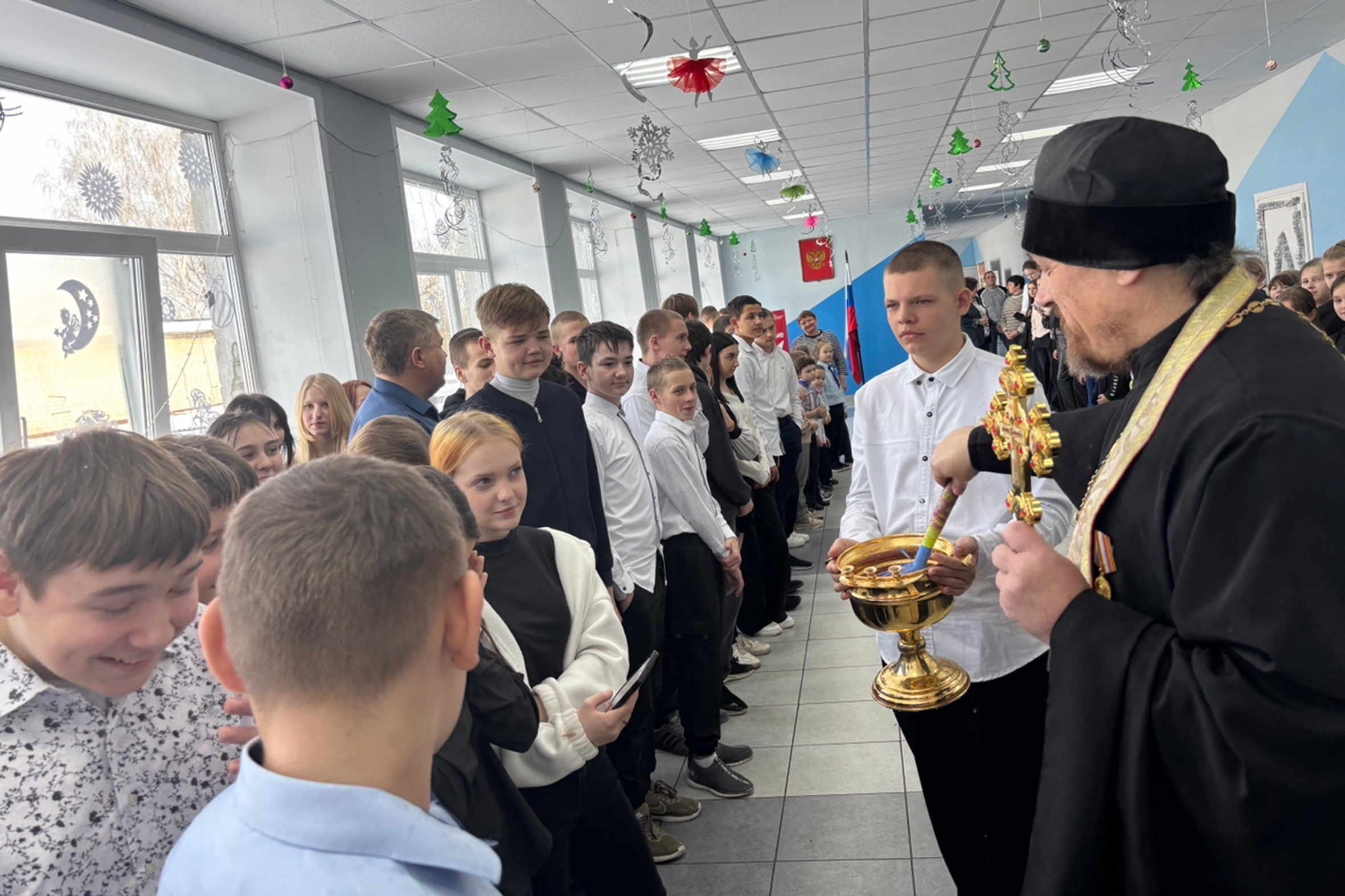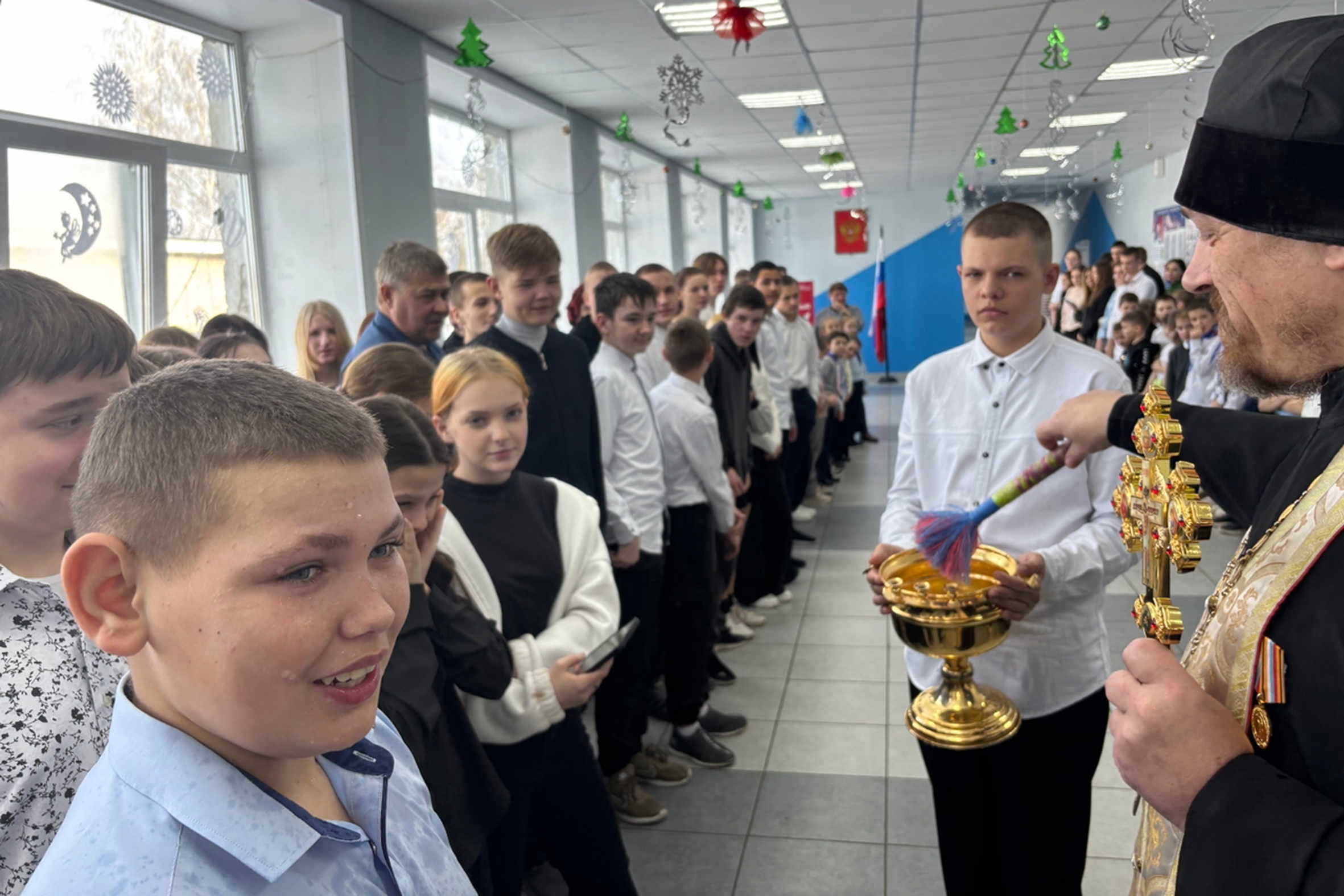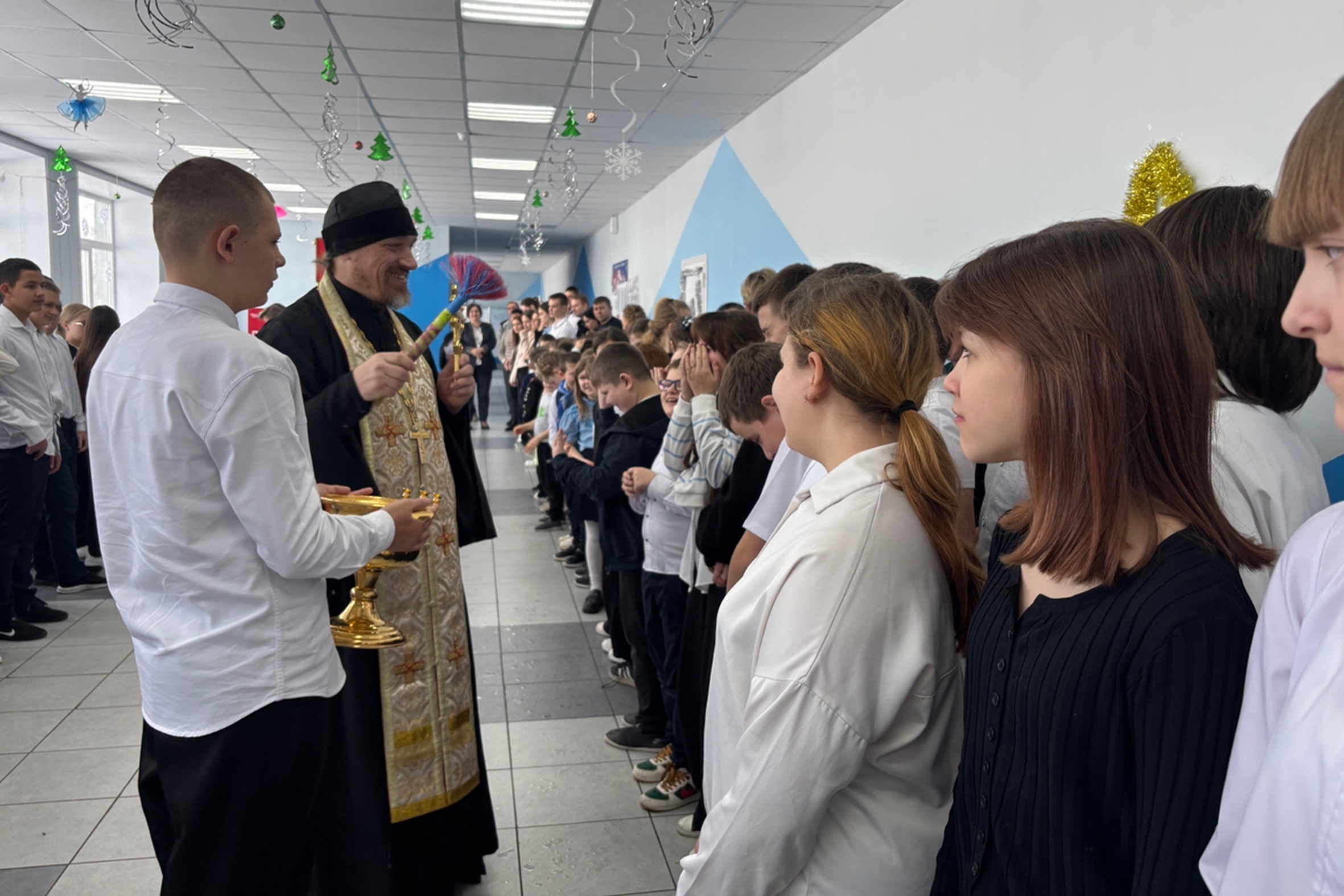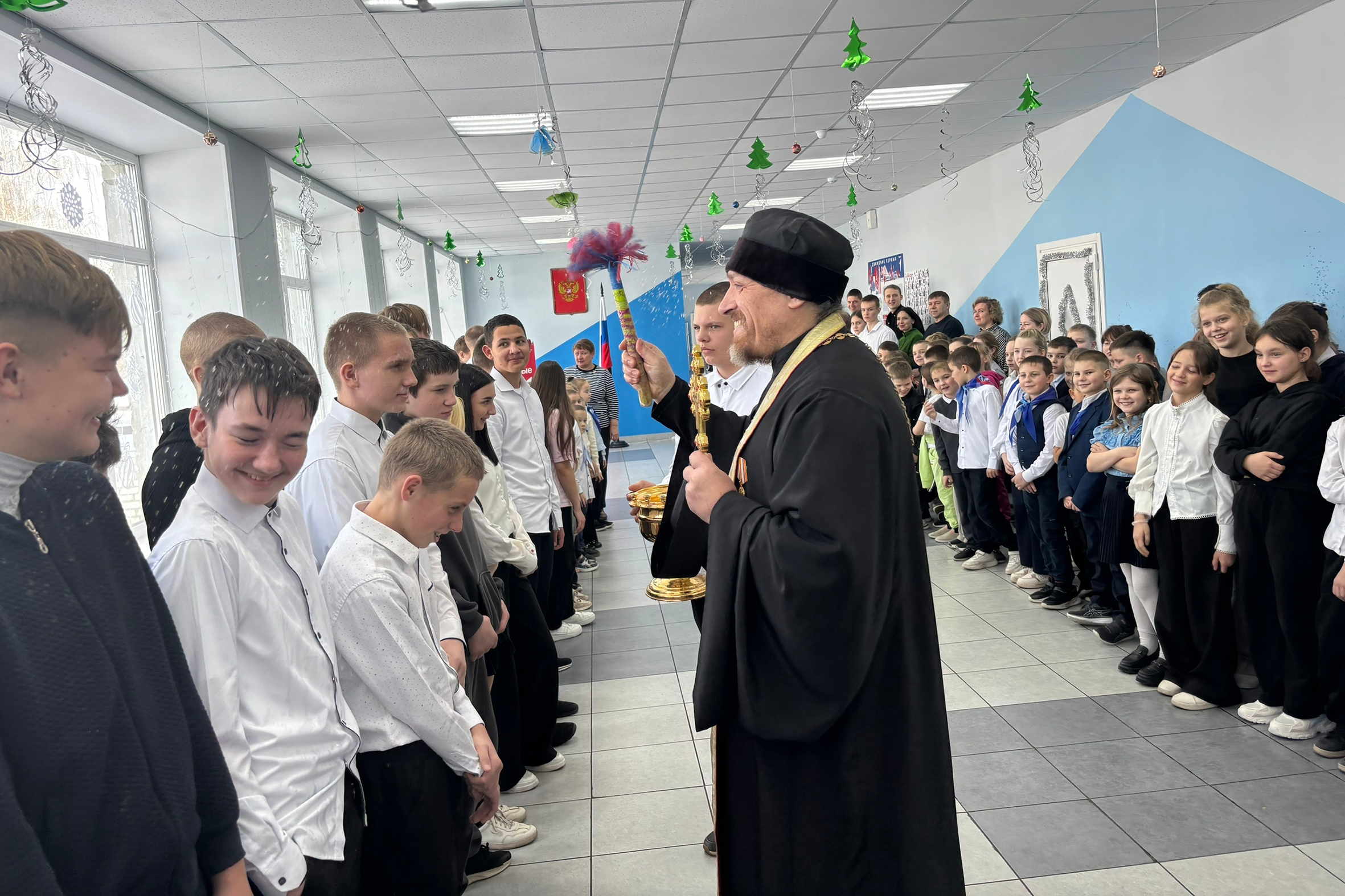 19 января 2026 года, в праздник Крещения Господня (Богоявления), настоятель храма Михаила Архангела с. Завальное, член общественного совета при ОМВД по Усманскому району иерей Алексей Занин посетил нашу школу.