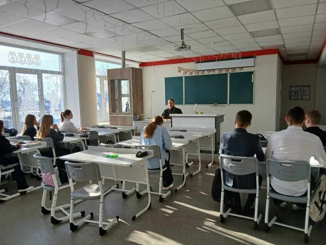 19 января 2026 года в целях духовно-нравственного воспитания, реализации рабочей программы воспитания (модуль «Основные школьные дела», модуль «Профилактика и безопасность») настоятель храма Михаила Архангела с. Завальное, член общественного совета при ОМВД России по Усманскому району иерей Алексей Занин провёл встречу с обучающимися 10-11 классов МБОУ СОШ с. Завальное.