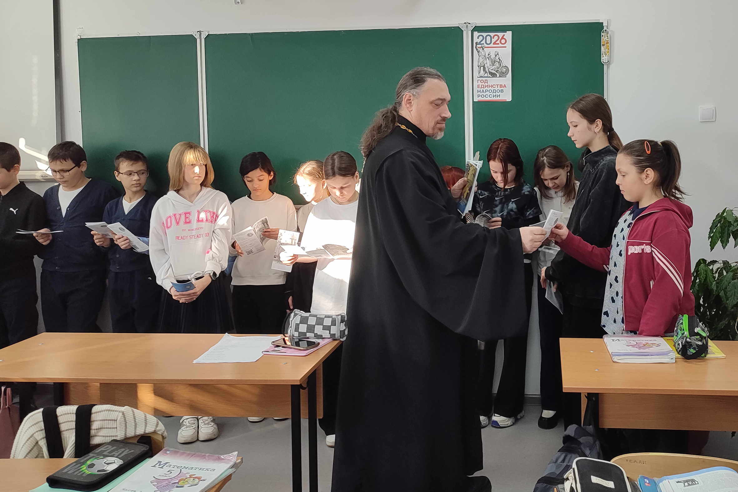 20 февраля 2026 г. о. Алексей Занин снова посетил сельскую школу в с. Завальное. Батюшка говорил о том, как важно оставлять грехи и жить с Богом, говорил о посте и о той радости, которая нас ждет после поста — Пасхе!