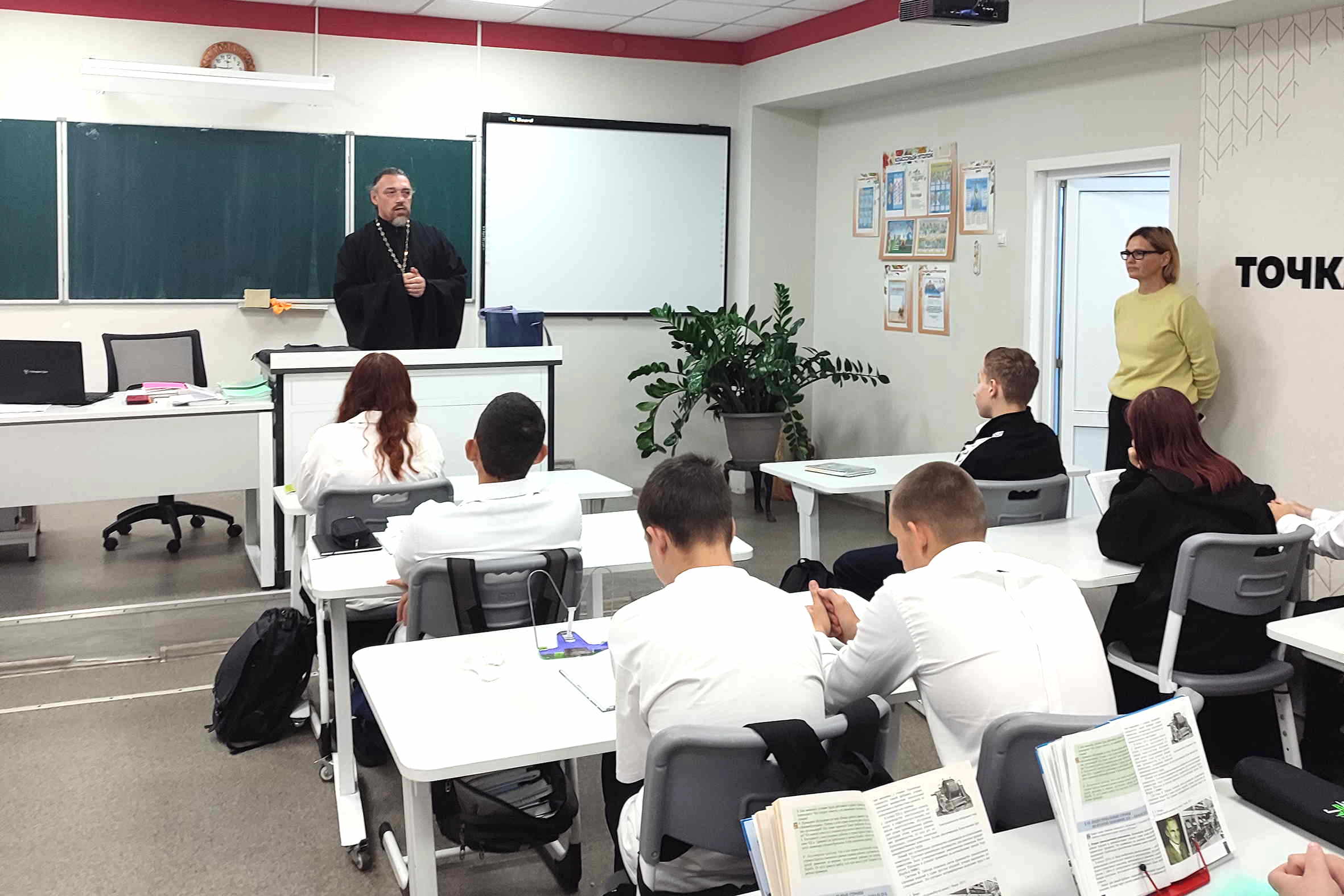 В МБОУ СОШ с. Завальное состоялось встреча школьников старших классов с членом общественного совета при мвд России по Усманскому району, настоятелем Архангельского храма с. Завальное иереем Алексеем Заниным. Встреча была посвящена Дню Народного Единства.