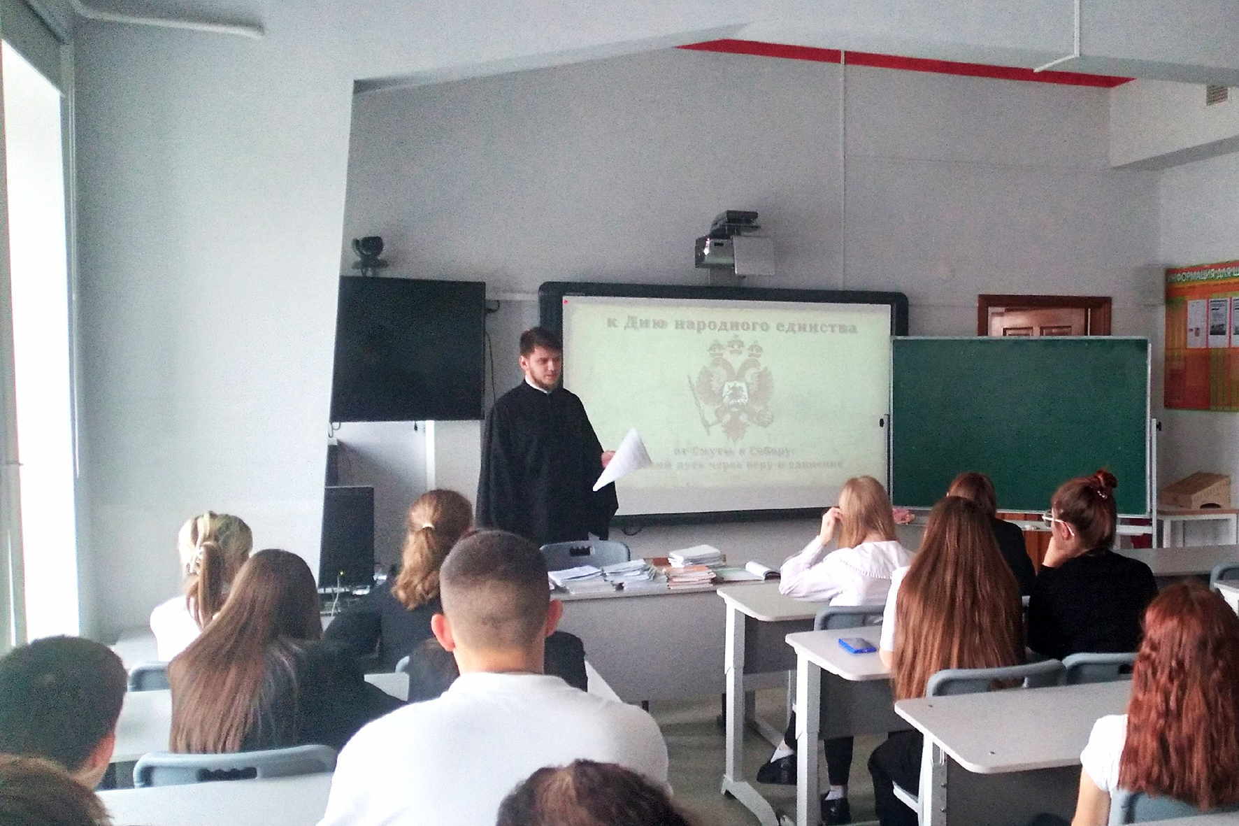 Накануне Дня народного единства в нашей школе прошла важная и интересная встреча! К нам в гости пришел дьякон Корнеев Пантелеимон чтобы поговорить об истории и смысле этого праздника.
