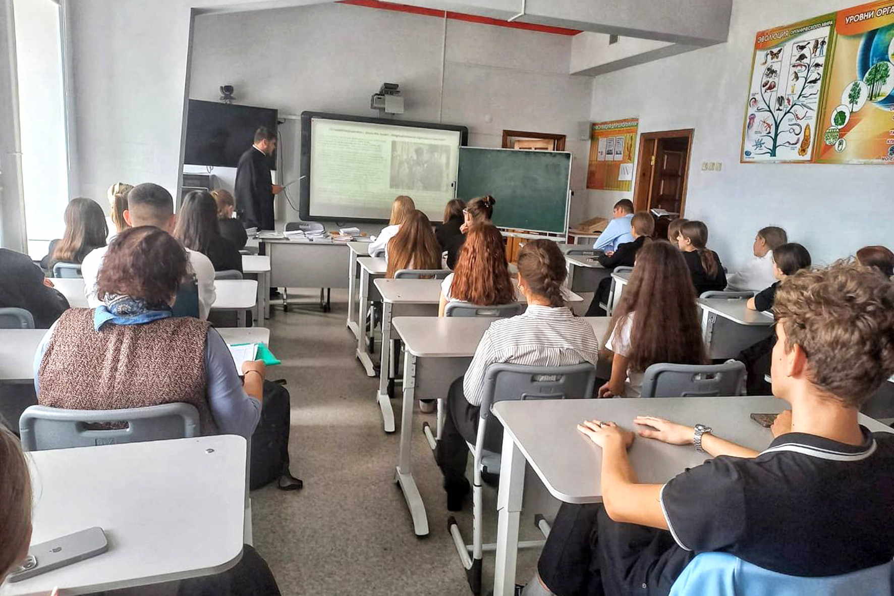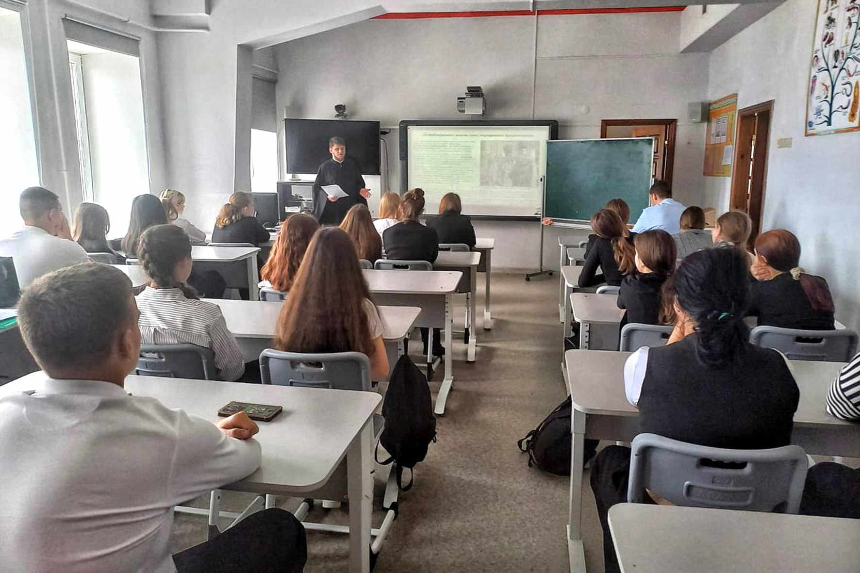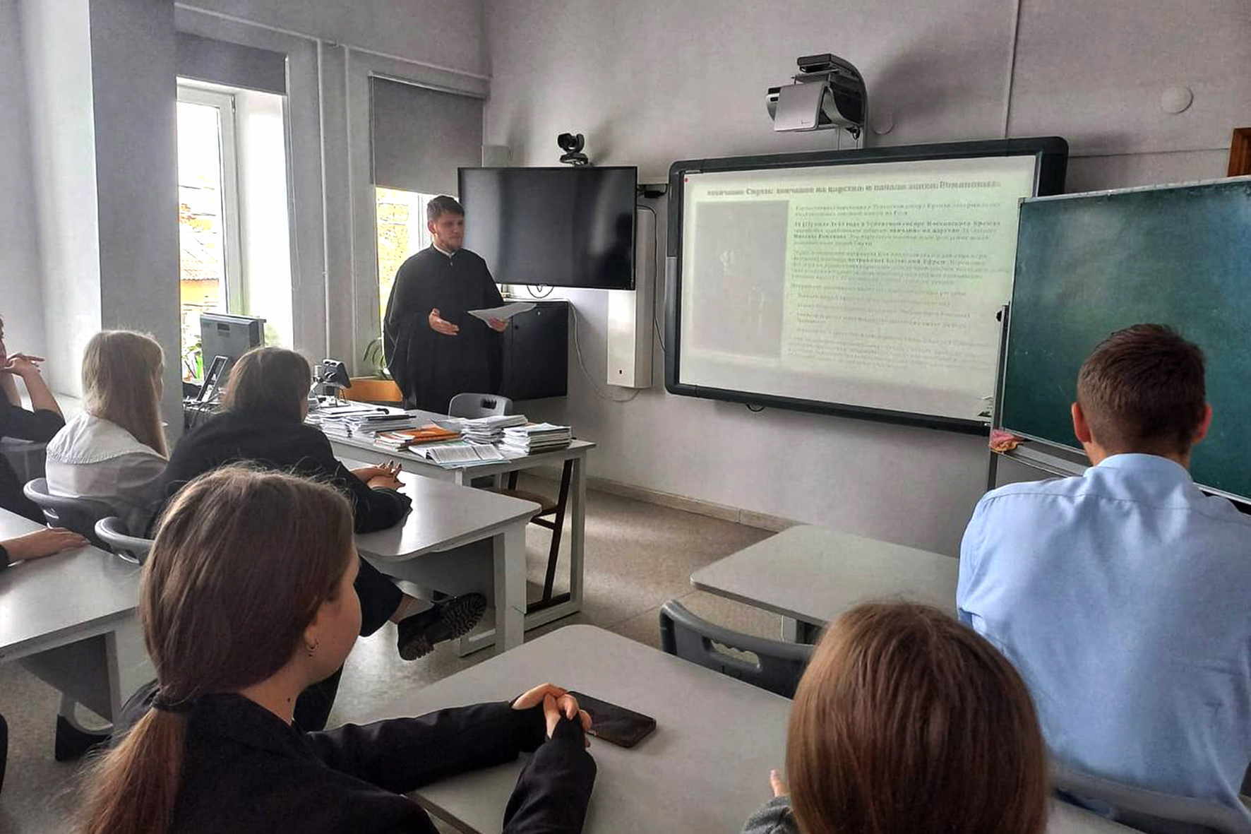Он рассказал учащимся и ребятам из патриотического клуба «Молодая Гвардия Единая Россия» о том, как вера и единство помогли нашему народу преодолеть Смутное время, и почему эти ценности так актуальны сегодня.