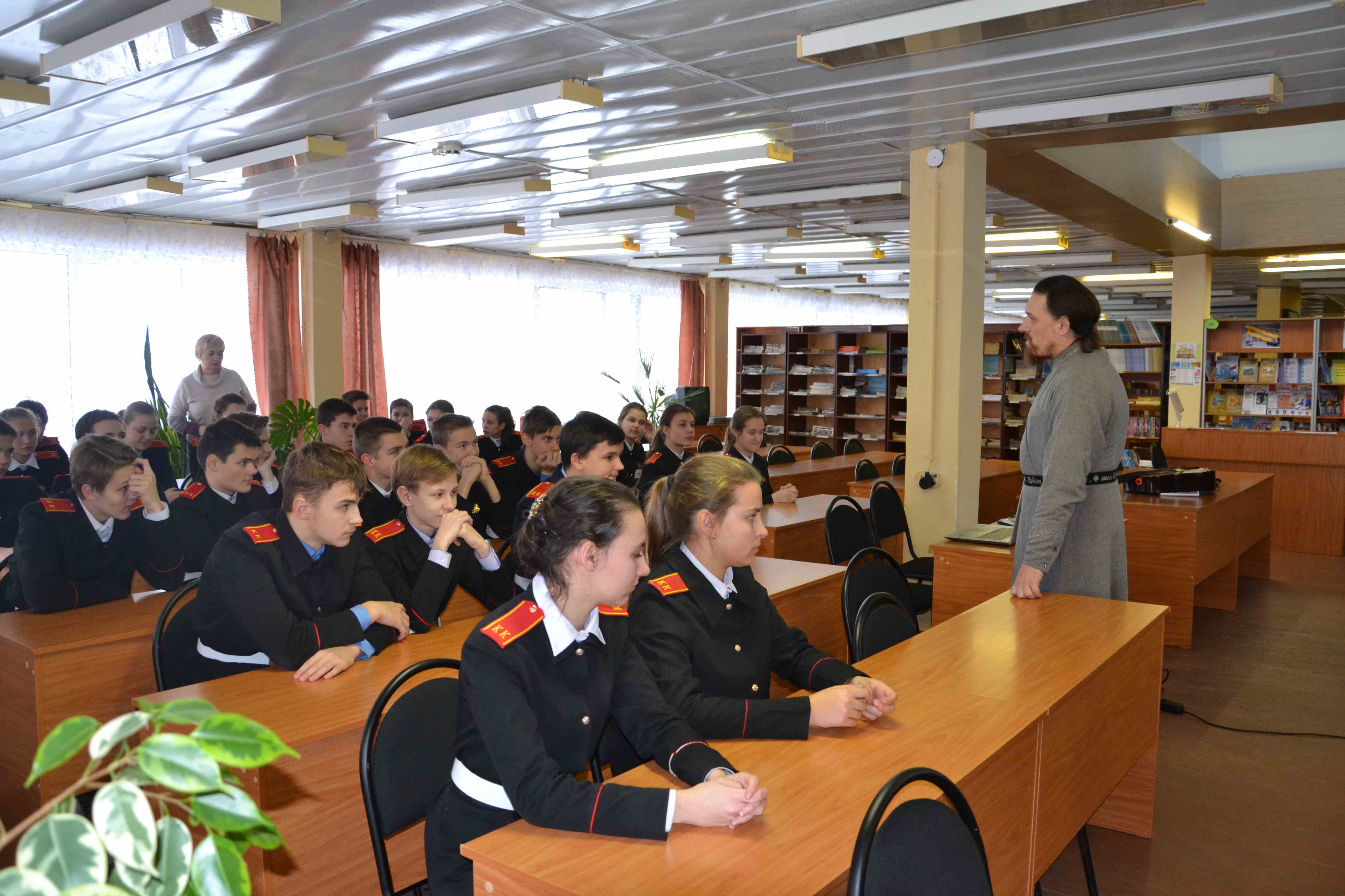 11 декабря, в здании межпоселенческой библиотеки города Усмани состоялась встреча священнослужителя Усманского церковного округа с учащимися кадетских классов городской средней школы №3. Клирик Богоявленского храма города и руководитель миссионерского отдела благочиния иерей Алексий Занин побеседовал с ребятами на тему «Подвиг православного воина. Загадка русской души».