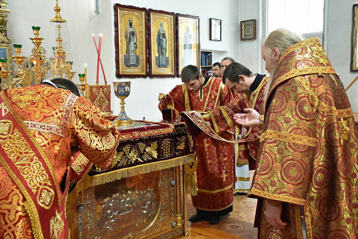 Его Преосвященству сослужили протоиереи: Олег Парахин, благочинный храмов Усманского церковного округа; Виктор Нечаев, настоятель храма; Игорь Тарасов; иерей Роман Остриков, клирик храма; иеродиакон Нифонт (Ивлев), насельник Задонского Рождество-Богородицкого мужского монастыря; диаконы: Николай Рошко, клирик Задонского Рождество-Богородицкого мужского монастыря; Георгий Плещаков, клирик храма.