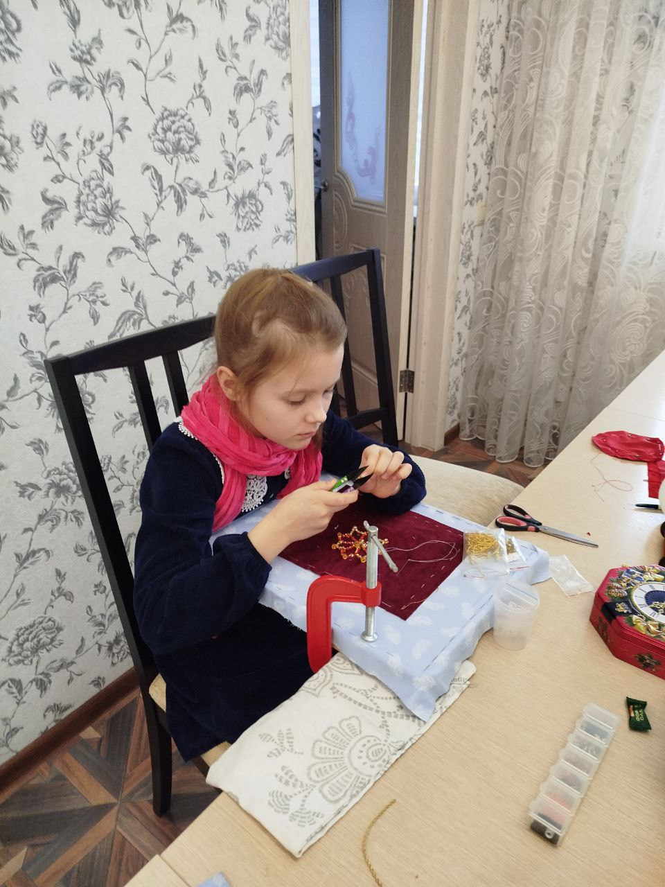 14 декабря состоялось очередное занятие в рамках проекта «Золотая нить», реализуемого при поддержке Министерства внутренней политики Липецкой области, на котором девочки свои законченные вышитые кресты, выполненные в технике золотного мастерства, снимают с рамок. Использовались следующие материалы трунцал, канитель, бисер, жемчуг, разноцветные камни, пайгетки. Следующий этап сшить их в мешочки для просфор.