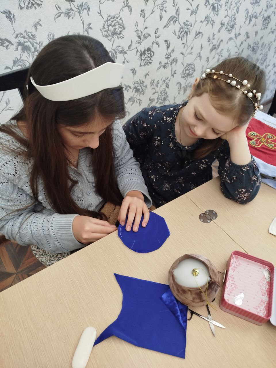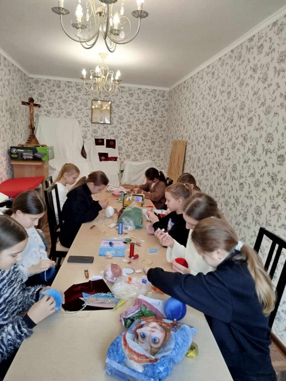 Работу по завершению елочной игрушки планируется закончить к рождественским праздникам, чтобы каждая воспитанница смогла украсить домашнюю елку своим шариком. Во время занятия протоиерей Олег Парахин провел беседу на рождественскую тему.